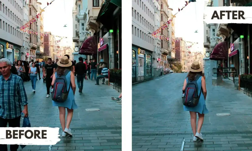 When an edit requires creating new elements—such as adding clouds or removing objects—the AI generates photorealistic pixels that match the scene.